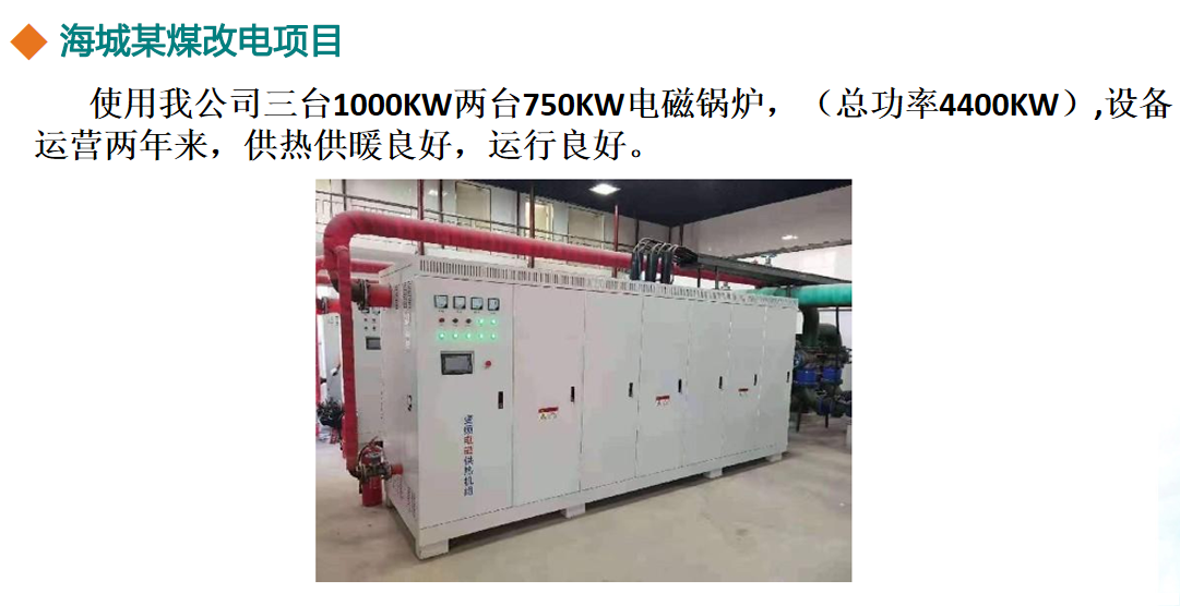 海城某煤改電項(xiàng)目使用我公司3臺(tái)1000KW